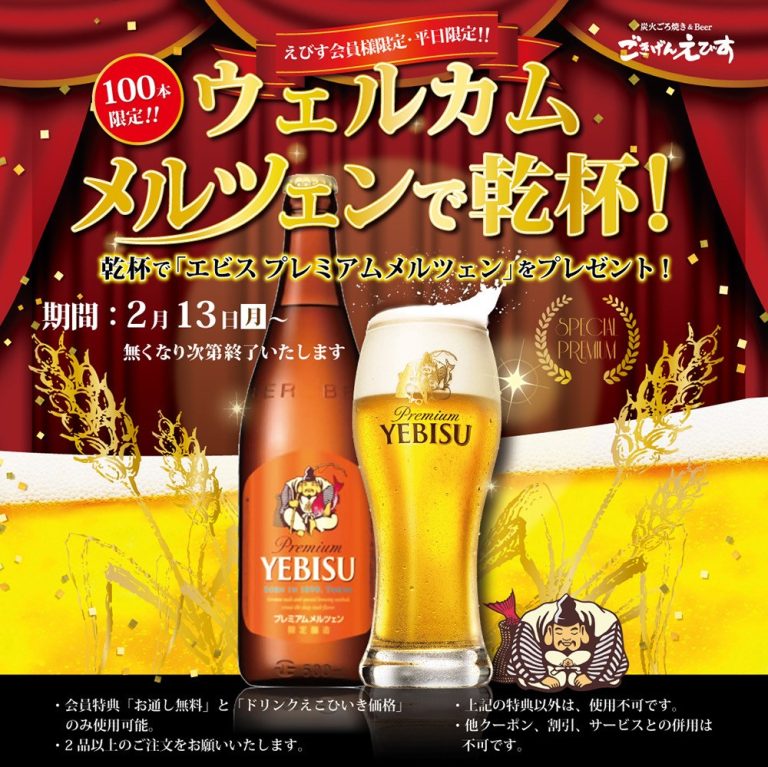 乾杯時“YEBISUプレミアム・メルツェン”をプレゼント致します🎁